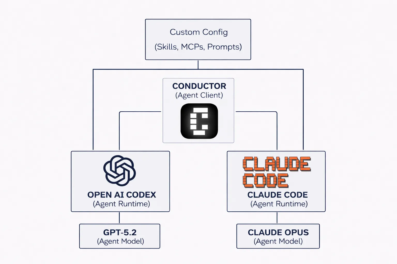 - Client - Where you interact with agents (we use Conductor for parallel orchestration)